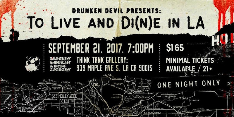 To Live and Di(n)e in LA is an intimate, 45-person supper club, where guests will sit down for dinner with the ghosts of the most infamous figures in Los Angeles’ true crime history, as they navigate the city’s sordid past through cuisine, cocktails, and cabaret-type performances. This special event will be part of Think Tank Gallery’s latest art show, Drinkin’, Smokin’, and West Coastin’ – billed as a “group love/hate letter to the city,” with a creative take by local event producers each night.