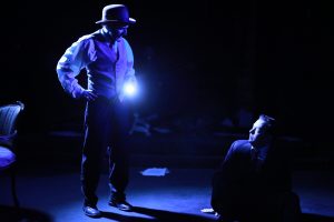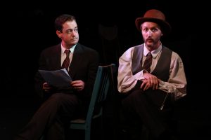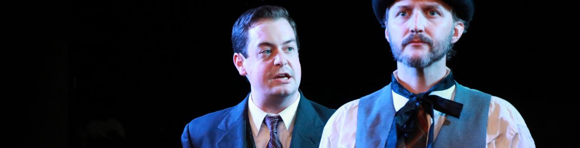 This piece relies heavily on the earnestness of the cast. As Arthur, Adam Meredith, easily slips from dialect to dialect, mannerism to mannerism – it’s an impressive turn which quite often adds a great deal of warmth to the proceedings. As dark as the tale gets, humor is present, as well, as Meredith brings the small town residents to life, each having there own peculiar connection to the mysterious Woman in Black. Sharing the stage as The Actor, Spencer Cantrell has a very different task. He becomes the anchor for the audience. He is the one hearing this tale, just as we sitting in the theater are, and his investment in the story is what pulls us in. In this case, Cantrell is immensely relatable as a man of logic wrestling with the illogical.